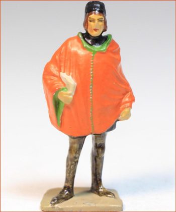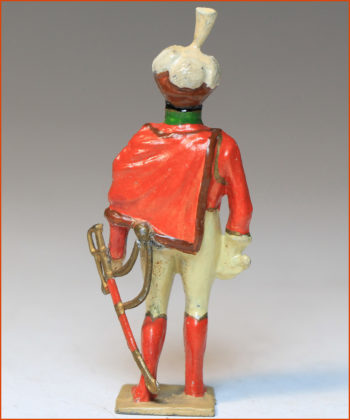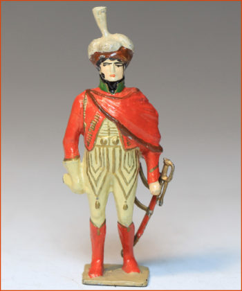 Maréchal Pierre Augereau. 1757-1816. Général brillant pendant la campagne d’Italie il est élevé au rang de Maréchal en 1804 et fait Duc de Castiglionne. Il perd peu à peu de son prestige auprès de Napoléon, qu’il reniera après la chute de l’Empire. Fabrication ancienne de Gustave Vertunni, France, vers 1950. Figurine en plomb massif. Echelle 55mm à la ligne des yeux. Hauteur hors tout : 60 – 65mm.