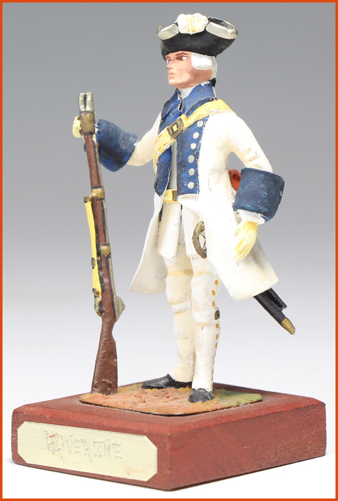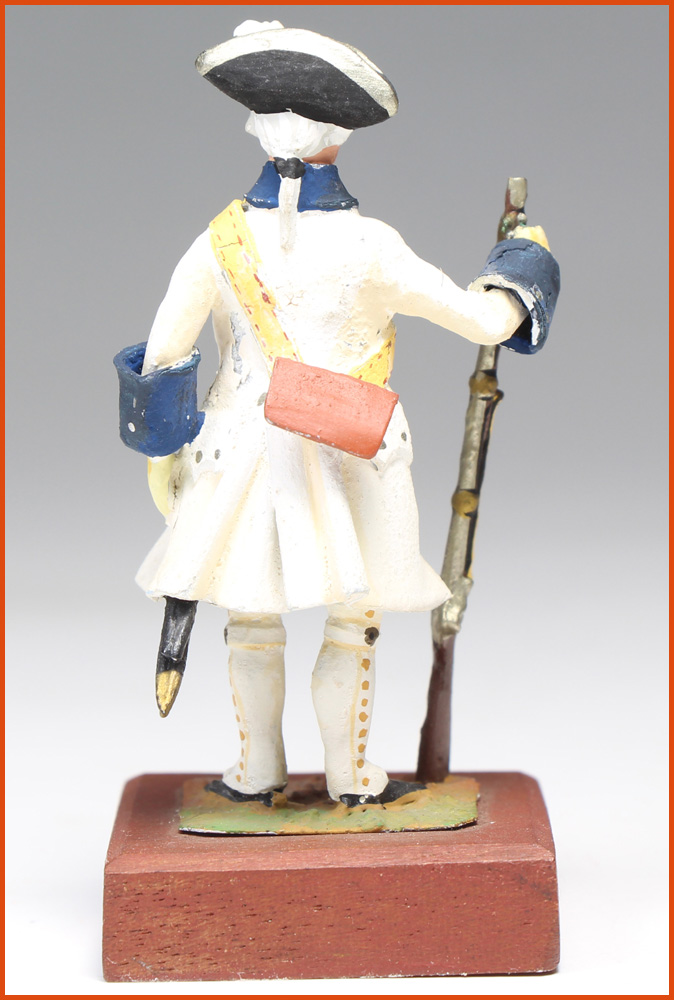 Lesellier. Auvergne Regiment 1737-1740. Reign of Louis XV. Soldier. Lead and lead foil figurine. Work by Jacques Lesellier (Belgium) circa 1970. Height to eye line: 54 mm.