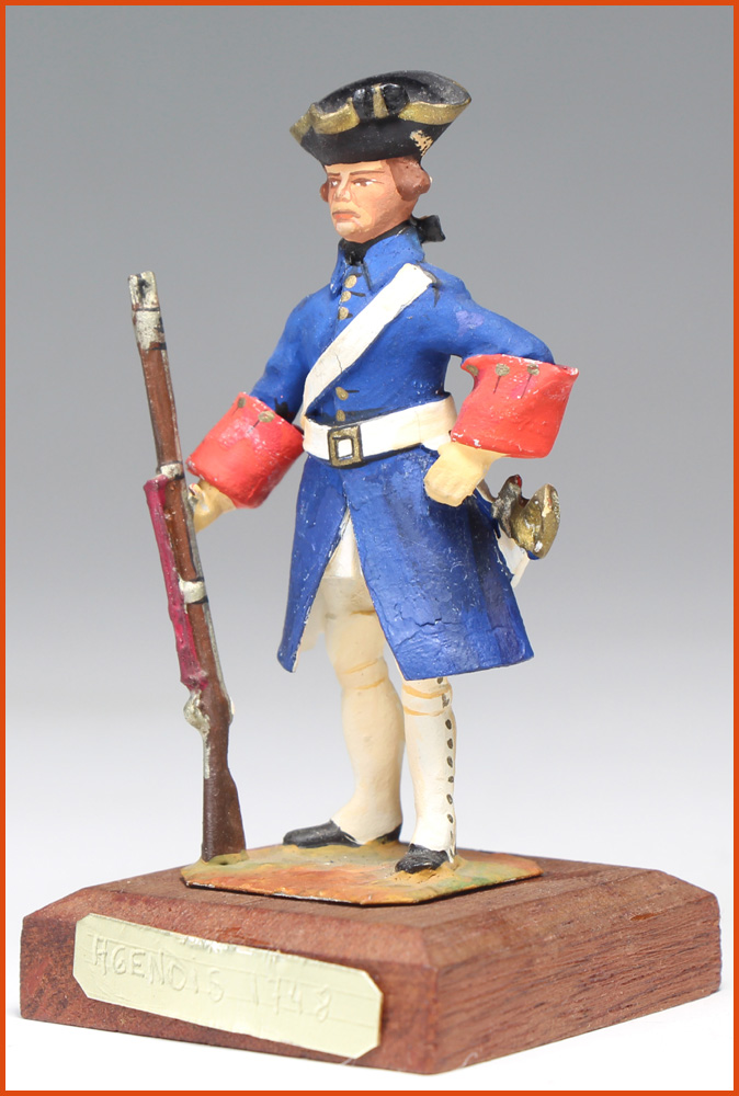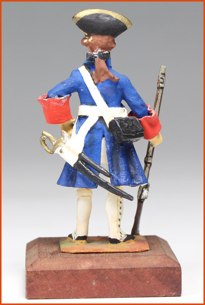 Agenais Regiment 1748. Reign of Louis XV. Soldier. Figurine in lead and lead foil. Work by Jacques Lesellier (Belgium) circa 1970. Height to eye line: 54 mm.