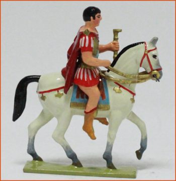 Bertrand du Guesclin, Constable of France (1320-1380). He began his military career under the reign of Jean Le Bon, in the clan of Charles de Blois, who claimed the Duchy of Brittany on behalf of his wife Jeanne de Penthièvre. In 1370, at the beginning of Charles V’s reign, he was awarded the title of Connétable, thanks to his numerous feats of arms, including the victory at Cocherel (1364). His charisma was such that he commanded the admiration and respect of his soldiers and adversaries alike. Courageous and cunning, he succeeded in driving out the “great companies” that had been devastating France since the sad defeat at Poitiers (1356). He was the armed wing of Charles V, who, thanks to Du Guesclin, recovered almost all the provinces that had become English under the Treaty of Brétigny in 1360. He died during the siege of Châteauneuf-de-Randon in 1380. Early manufacture by Gustave Vertunni, France, circa 1950. Solid lead figurine. Scale 55mm to eye line. Overall height: 60 – 65mm.