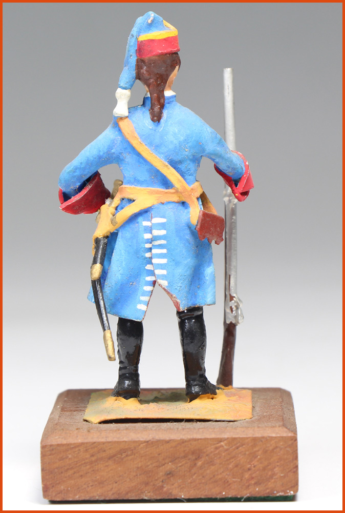 Lesellier.Dragon du régiment du Roi 1693. Règne de Louis XIV. Soldat. Figurine en plomb et feuille de plomb. Travail de Jacques Lesellier (Belgique) vers. 1970. Hauteur à la ligne des yeux : 54 mm.