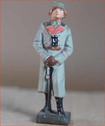 Diane de Poitiers (1499-1566). Pourtant de vingt ans son ainée, elle fut la grande favorite du roi Henri II, qui fit sa fortune. À la mort du roi, elle est chassée par la reine Catherine de Médicis, qui reprend une grande partie de ses biens, notamment le château de Chenonceaux. Fabrication ancienne de Gustave Vertunni, France, vers 1940. Figurine en plomb creux, remplie de plâtre. Échelle 55mm à la ligne des yeux. Hauteur hors tout : 60 – 65mm.