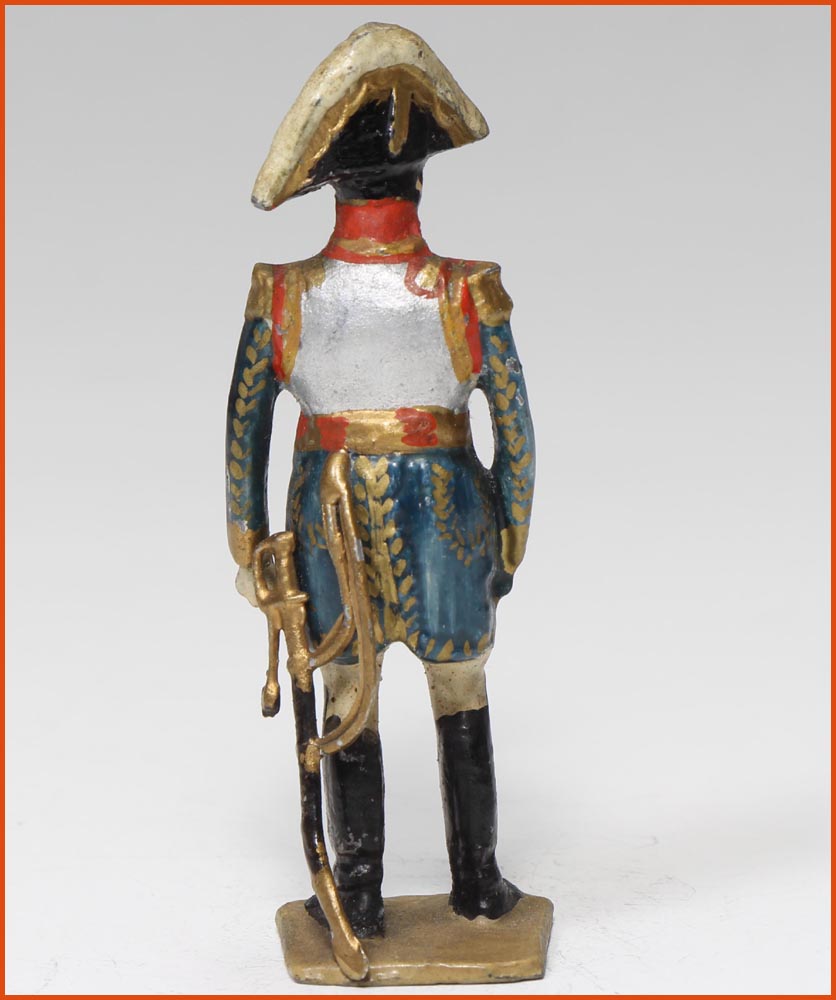 Étienne Marie Antoine Champion de Nansouty (1768-1845). Général de division dès 1803, il deviendra un des meilleurs chefs de cavalerie de l’Empire. Il s’illustre dans toutes les batailles, notamment à Friedland ; l’Empereur le couvrira d’honneurs et de richesses. Fabrication ancienne de Gustave Vertunni, France, vers 1940. Figurine en plomb massif. Échelle 55mm à la ligne des yeux. Hauteur hors tout : 60 – 65mm.