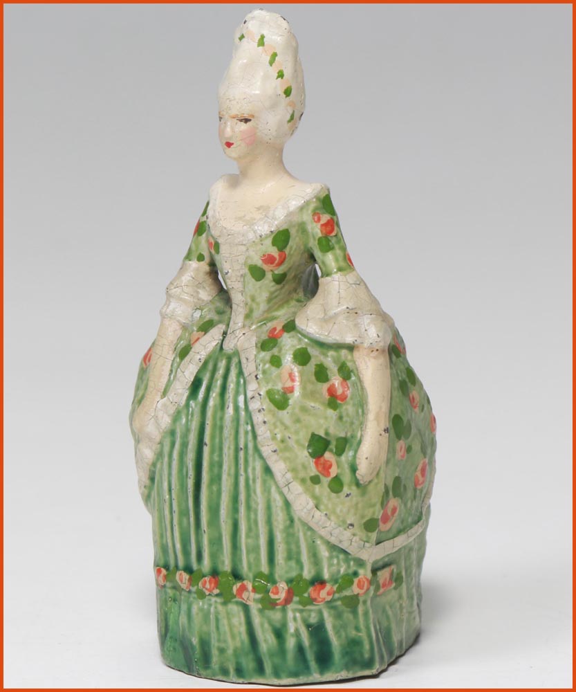 La princesse de Lamballe. Marie-Thérèse-Louise de Savoie-Carignan (1749-1792). Amie intime de la Dauphine Marie-Antoinette d’Autriche, elle le restera tout au long de son règne. Quant survient la révolution, elle refuse de s’exiler, puis est emprisonnée au Temple avec la famille Royale. Le 3 septembre 1792, elle est lynchée par la fureur révolutionnaire. Fabrication ancienne de Gustave Vertunni, France, vers 1935. Figurine en plomb creux, remplie de plâtre. Echelle 55mm à la ligne des yeux. Hauteur hors tout : 60 – 65mm.