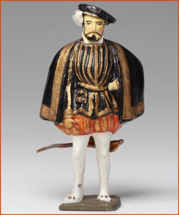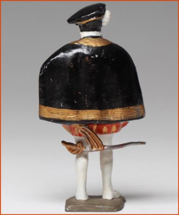 Pierre André de Suffren (1729-1788). Le « Bailli de Suffren » est considéré comme le plus grand chef militaire de la marine Royale. Sa carrière débute sous le règne de Louis XV, mais c’est sous Louis XVI, qu’il inflige à la Royal-Navy, une série de défaites navales qui lui apportent la gloire. Fabrication ancienne de Gustave Vertunni, France, vers 1940. Figurine en plomb massif. Echelle 55mm à la ligne des yeux. Hauteur hors tout : 60 – 65mm.